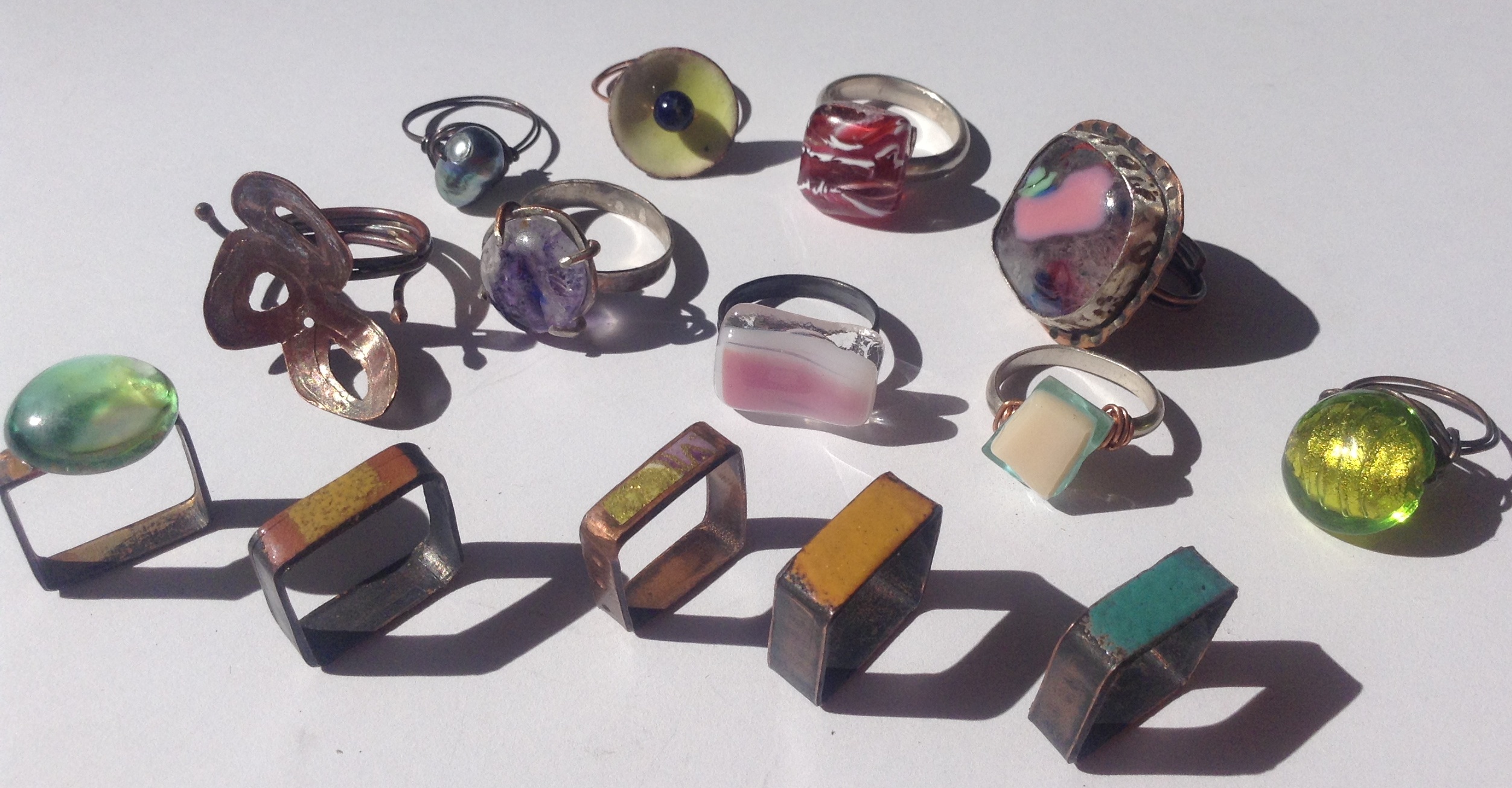 I love rings!!! Enamel, recycled glass….. fun!